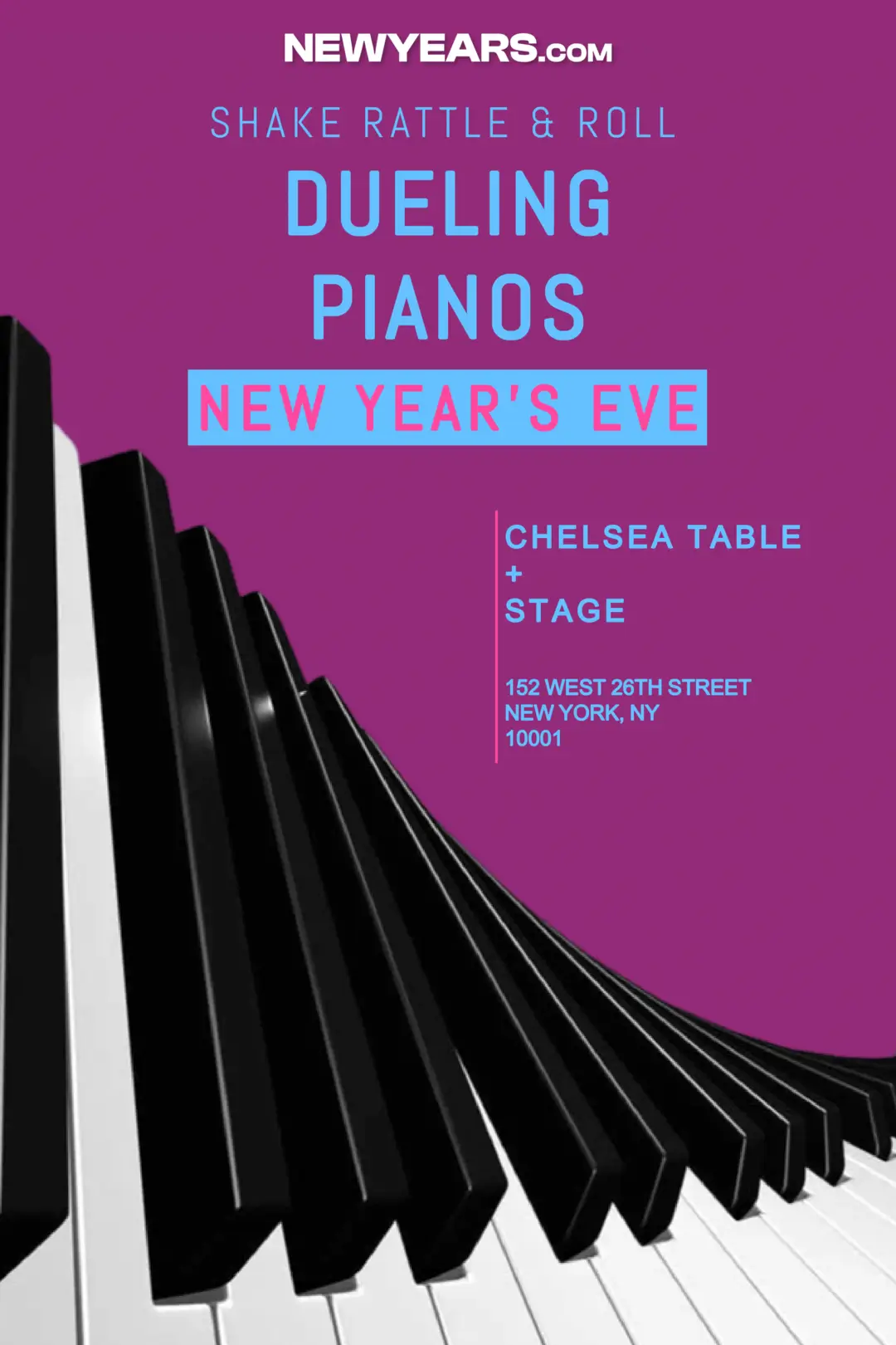 Ring in the New Year with the Shake Rattle & Roll Dueling Pianos New Year's Rockin' Eve!!! -- It's our annual tradition with all your favorite songs, in a singalong, dance-along, laugh-along, drink-along party that runs ALL NIGHT LONG!