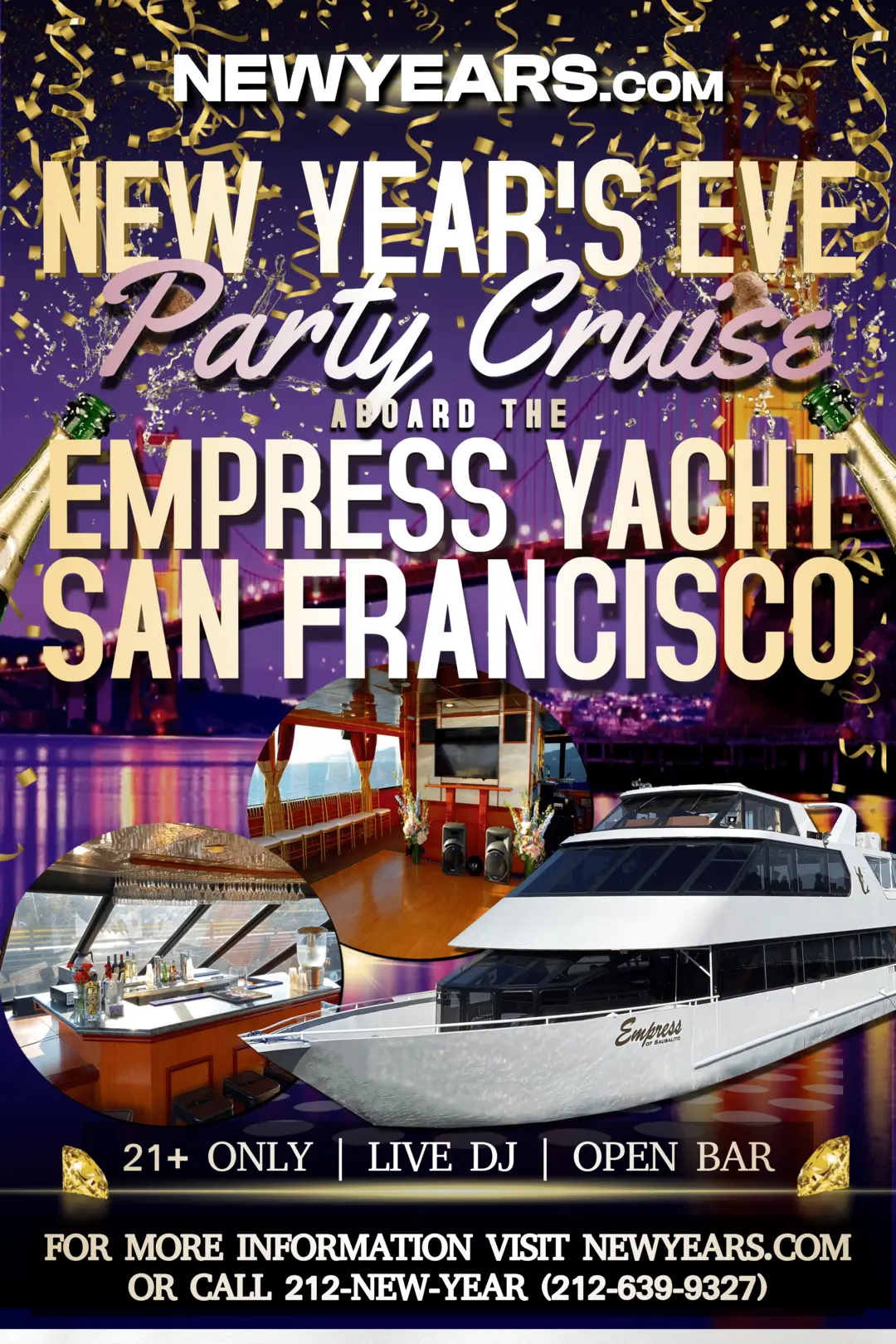Enter 2025 on a wild NYE party cruise in the Golden City aboard the Empress Yacht! We’re ending the year with a bang; cruising on The Bay, dancing, drinking, and getting the absolute best views of the annual fireworks show. Sounds like fun, doesn’t it? Order your tickets to this superb San Francisco New Year’s Eve yacht party now, before it’s too late.